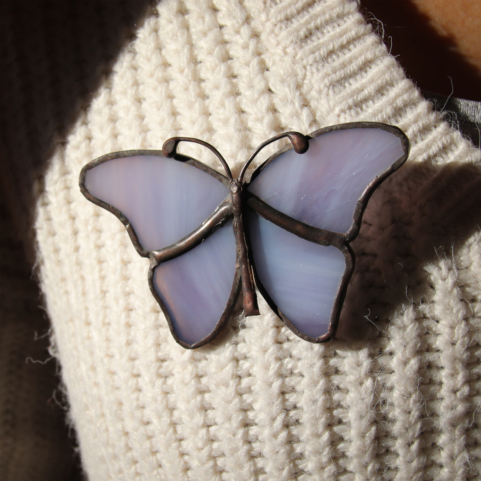Brosa din sticla colorata, realizata in tehnica Tiffany.