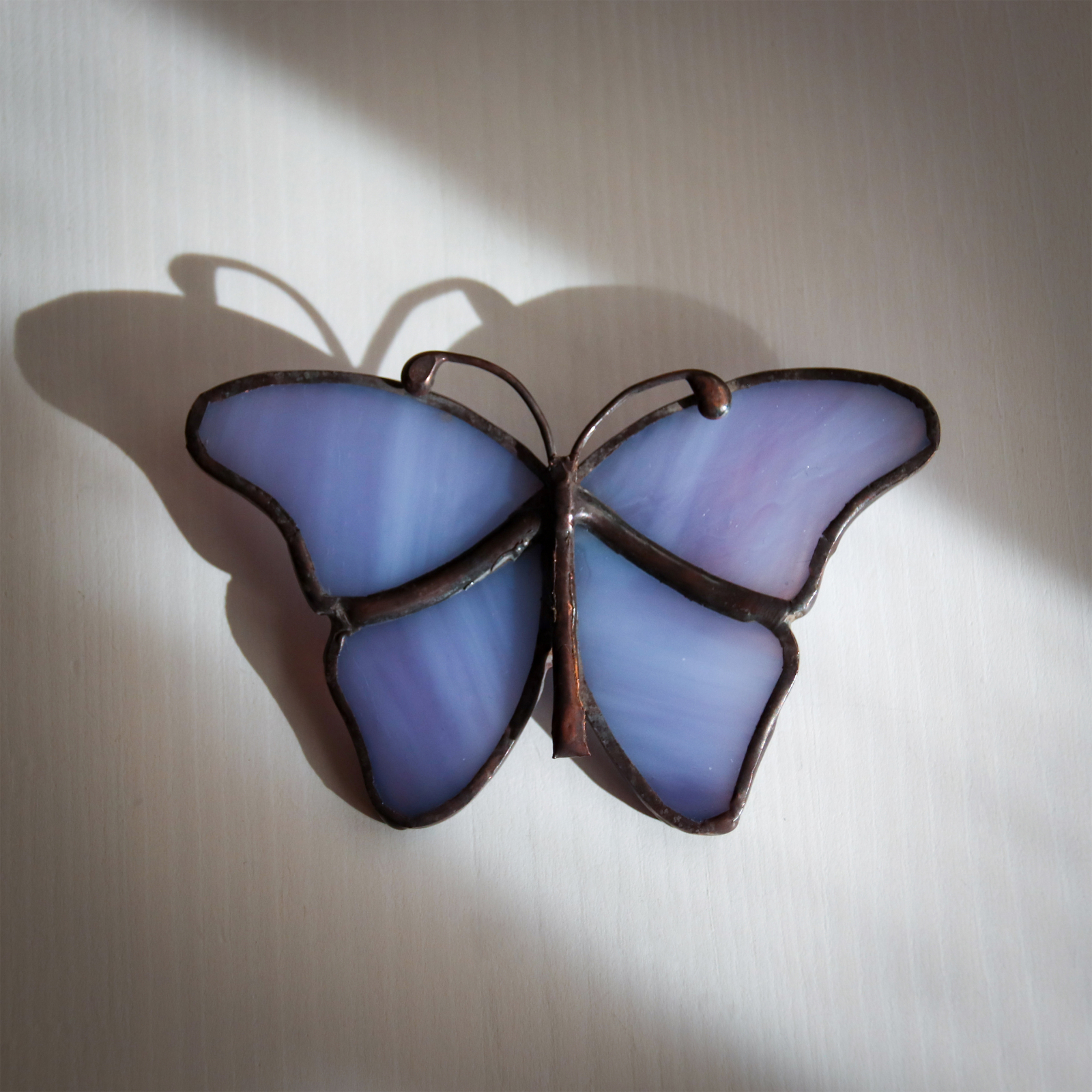 Materiale folosite: sticla vitraliu, cupru, cositor, ac de prindere.
