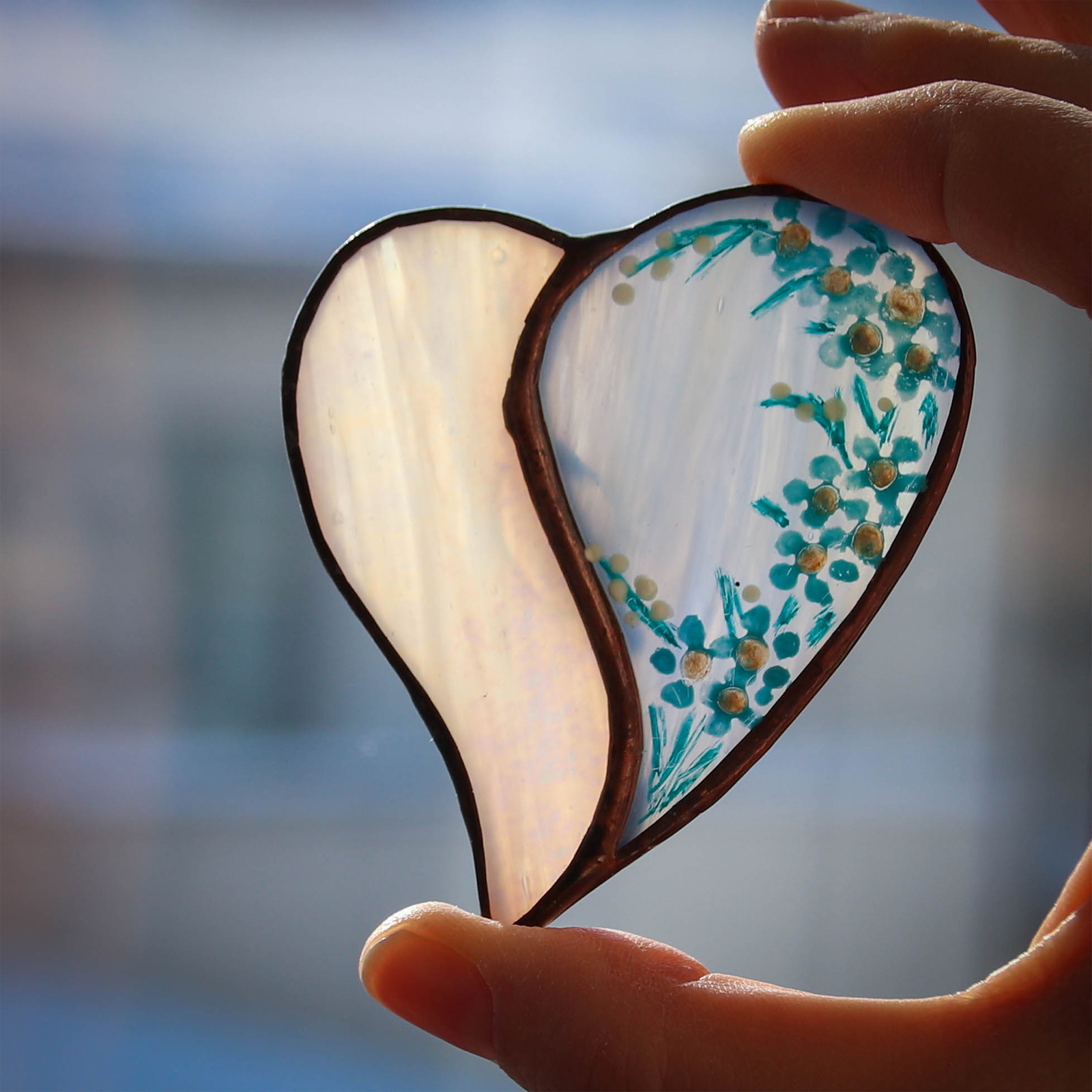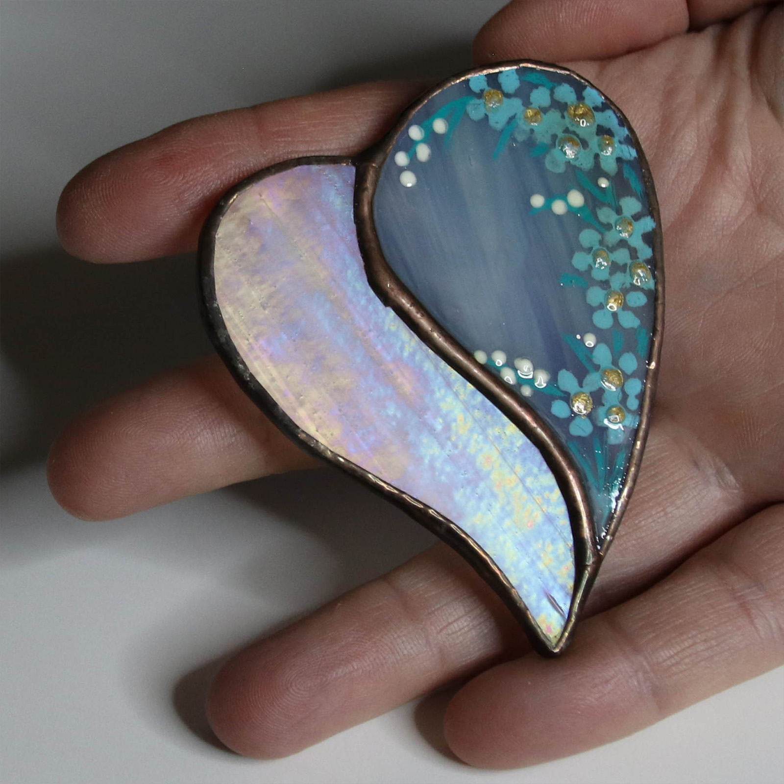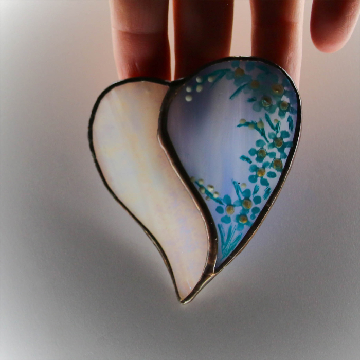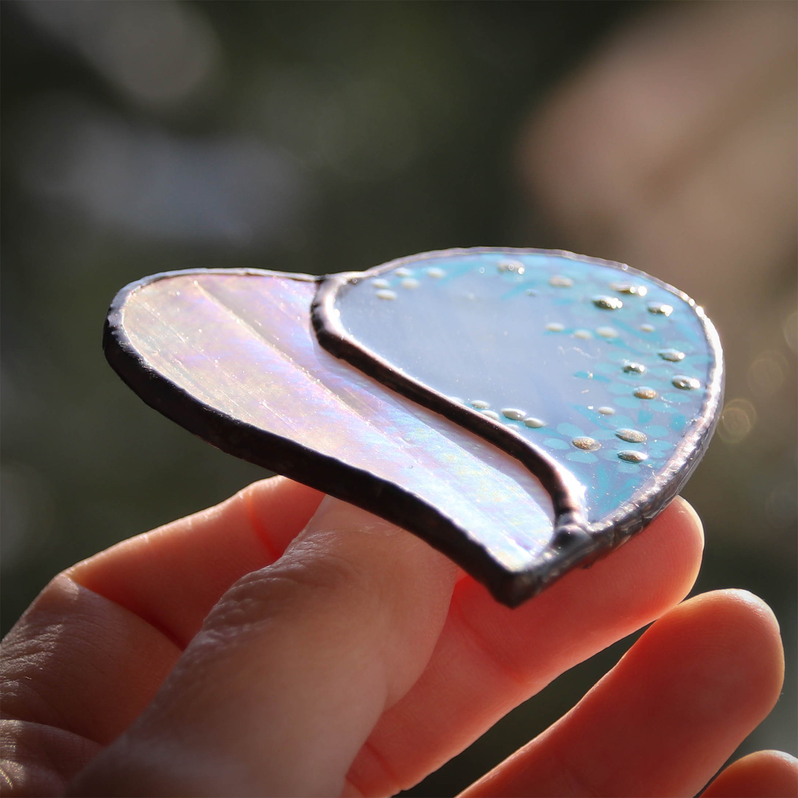 Bijuterie artizanală din sticlă vitraliu – pur decorativă, nu jucărie.