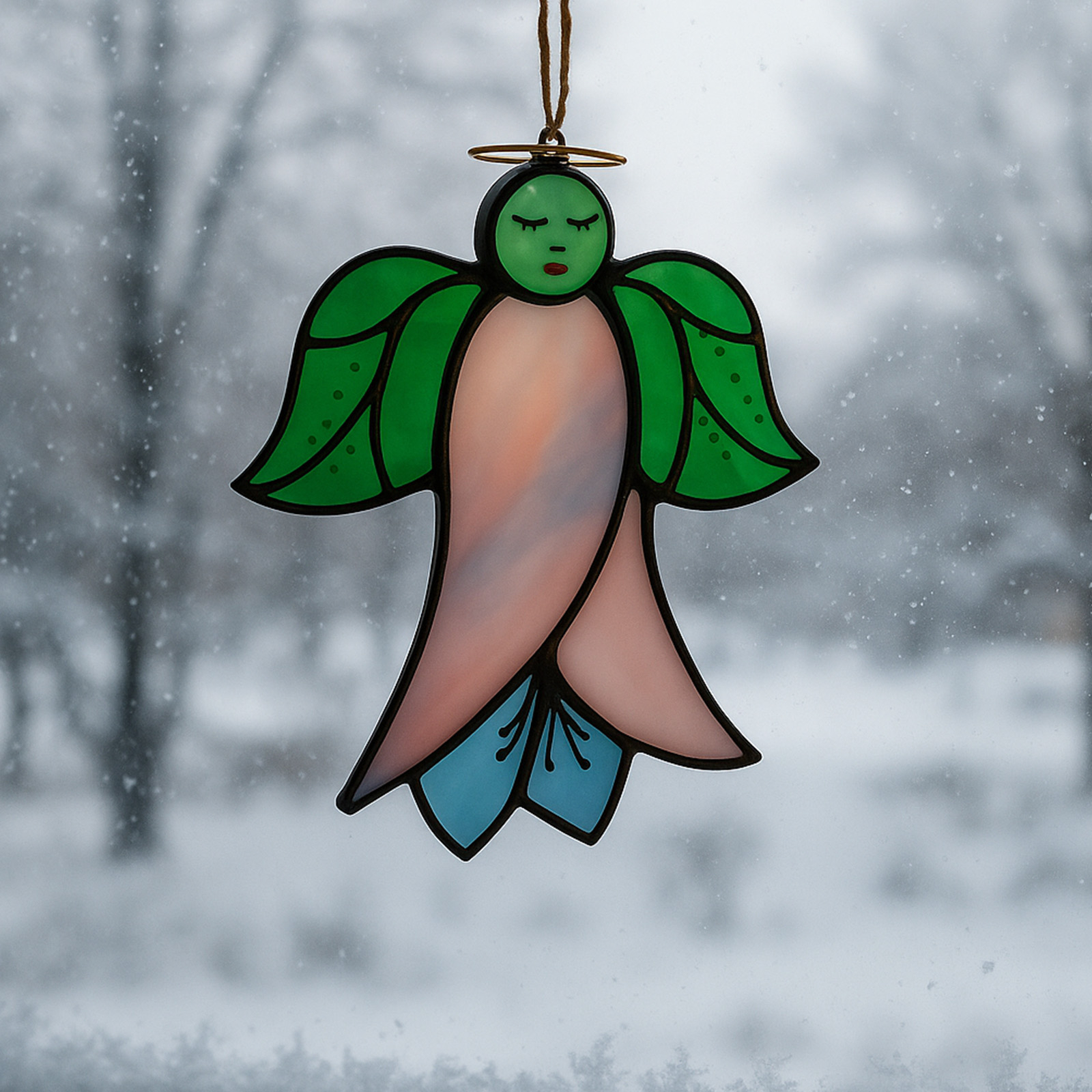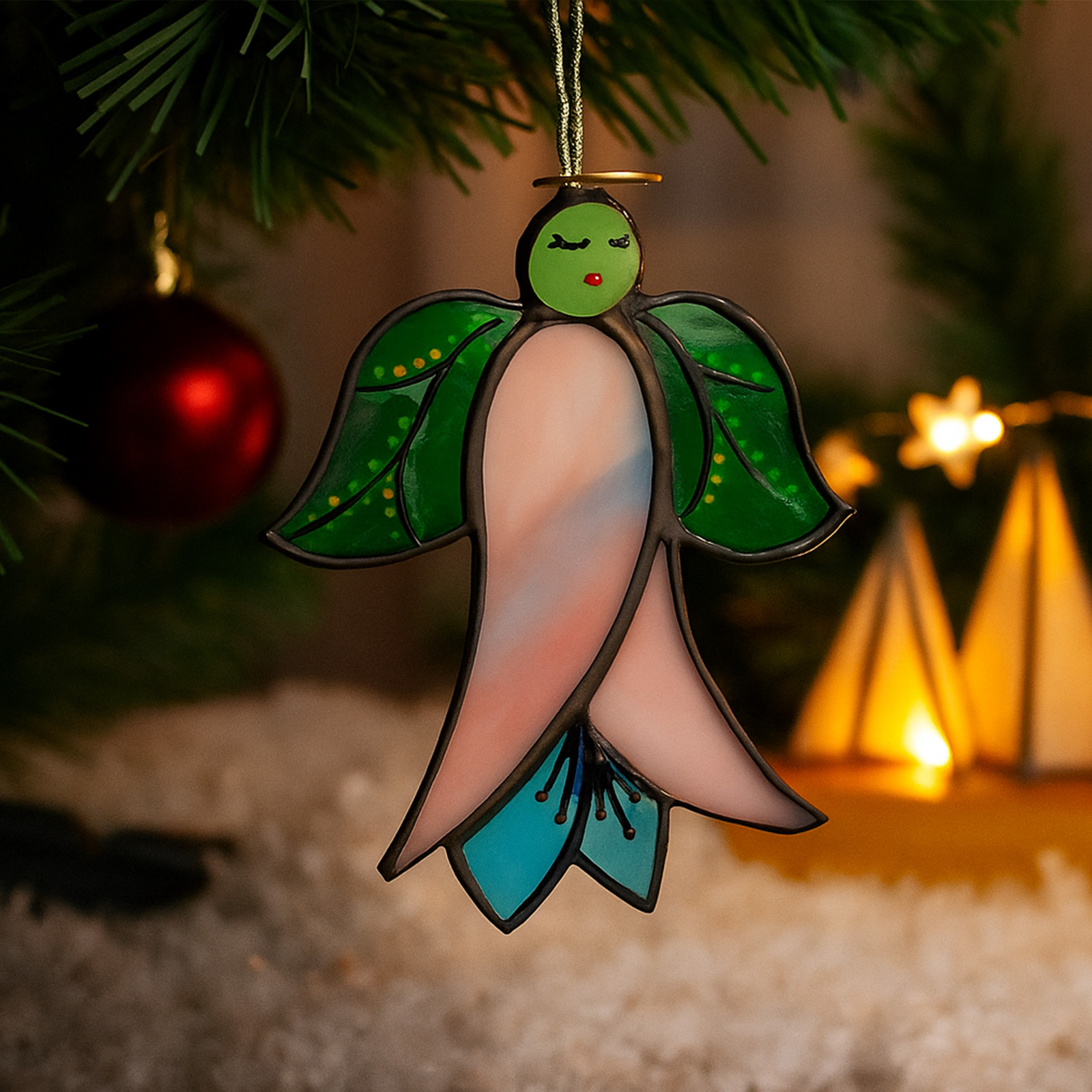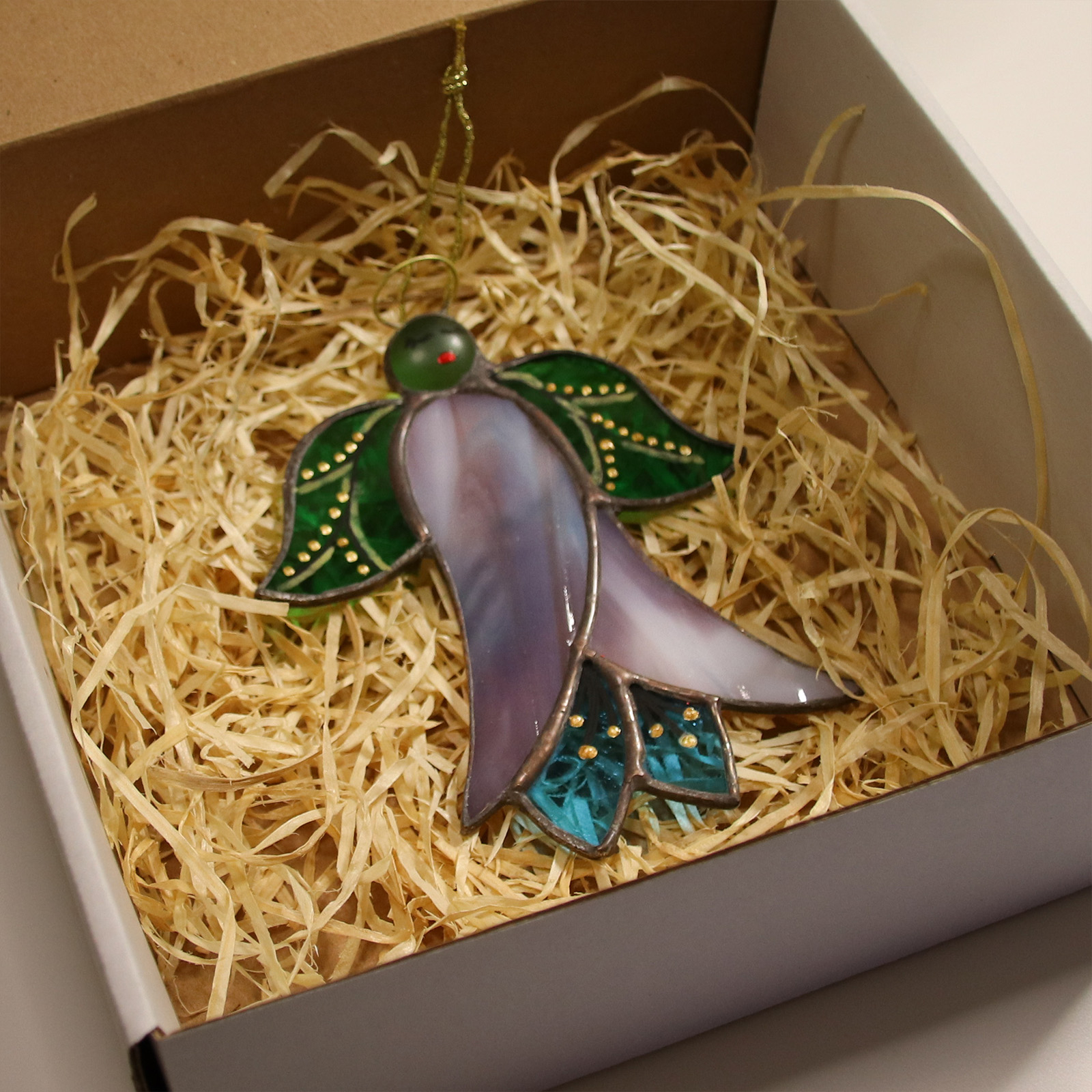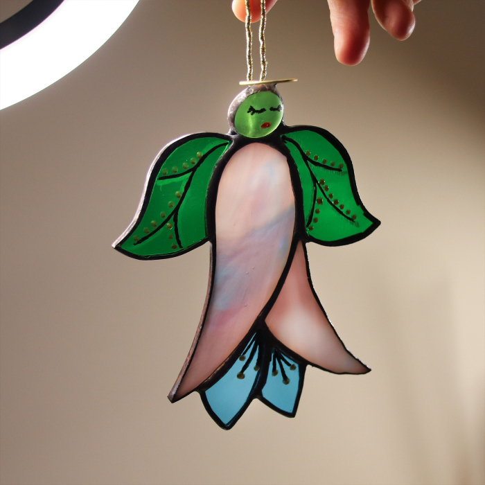 O decoratiune delicata care imbina simbolul ingerului cu gratia unei flori. Realizat manual din sticla vitraliu, acest obiect capteaza si reflecta lumina intr-un mod spectaculos. Poate fi un decor de Craciun, dar si o piesa calda si poetica, potrivita in orice anotimp. Un cadou cu suflet si lumina.