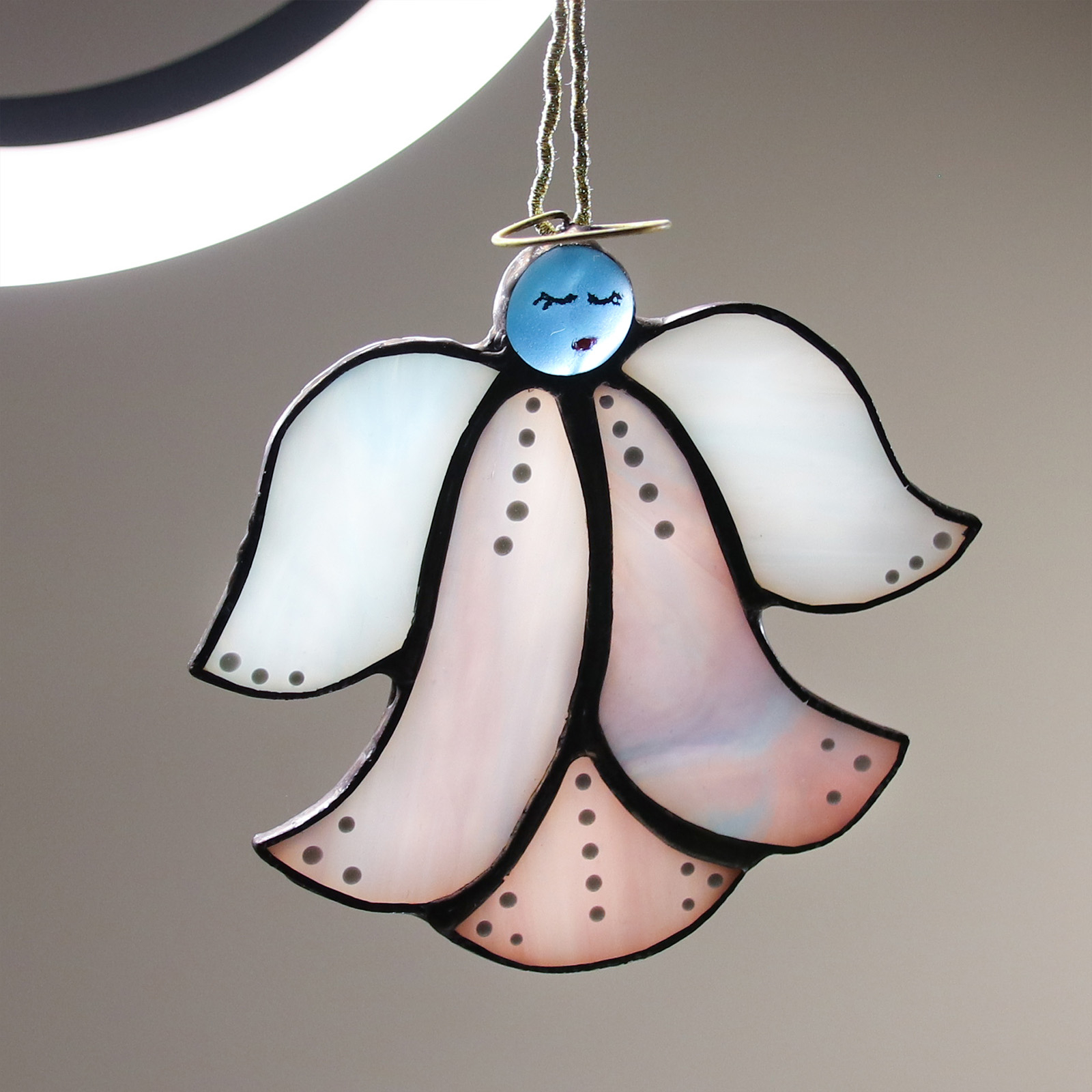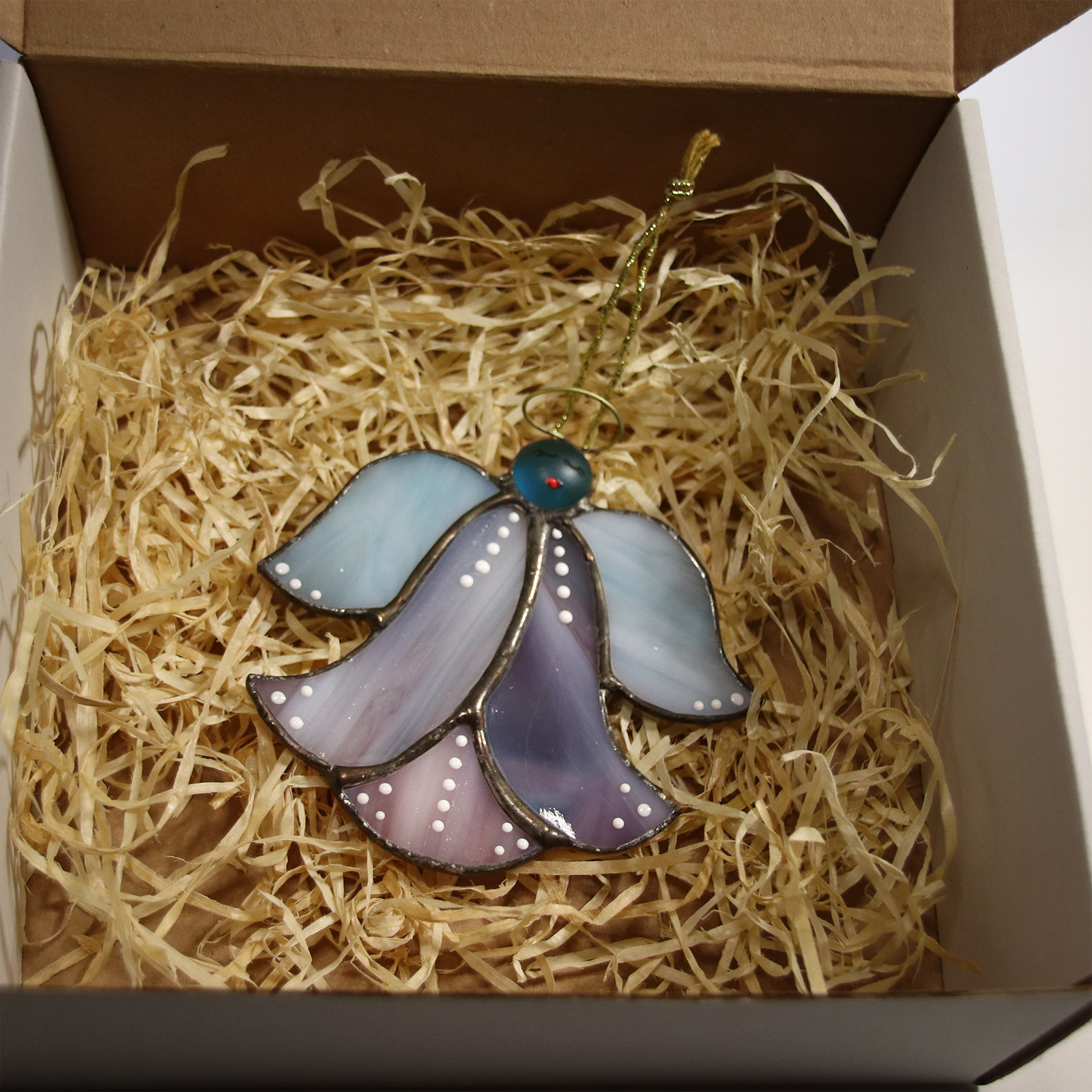 O decoratiune delicata care imbina simbolul ingerului cu gratia unei flori. Realizat manual din sticla vitraliu, acest obiect capteaza si reflecta lumina intr-un mod spectaculos. Poate fi un decor de Craciun, dar si o piesa calda si poetica, potrivita in orice anotimp. Un cadou cu suflet si lumina.