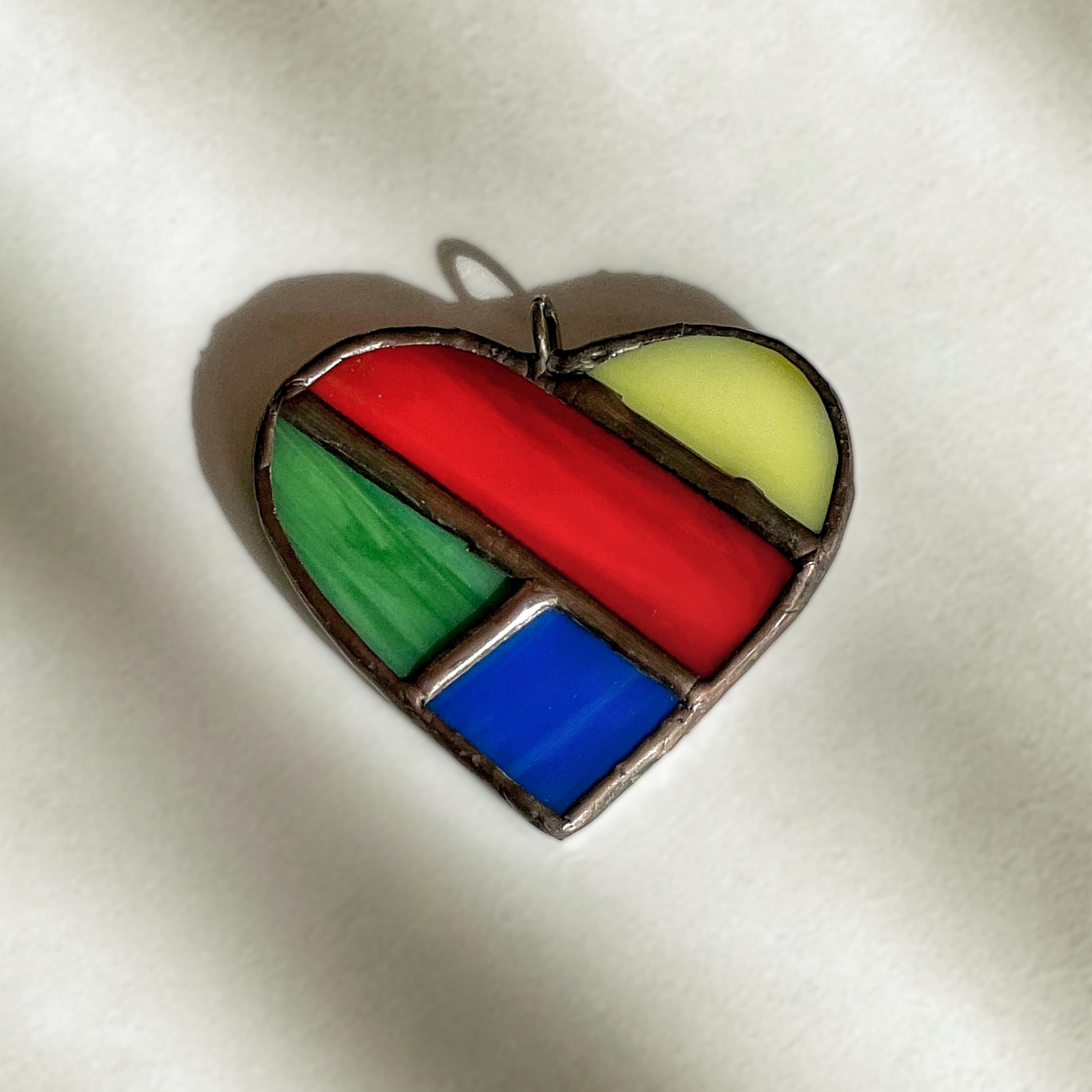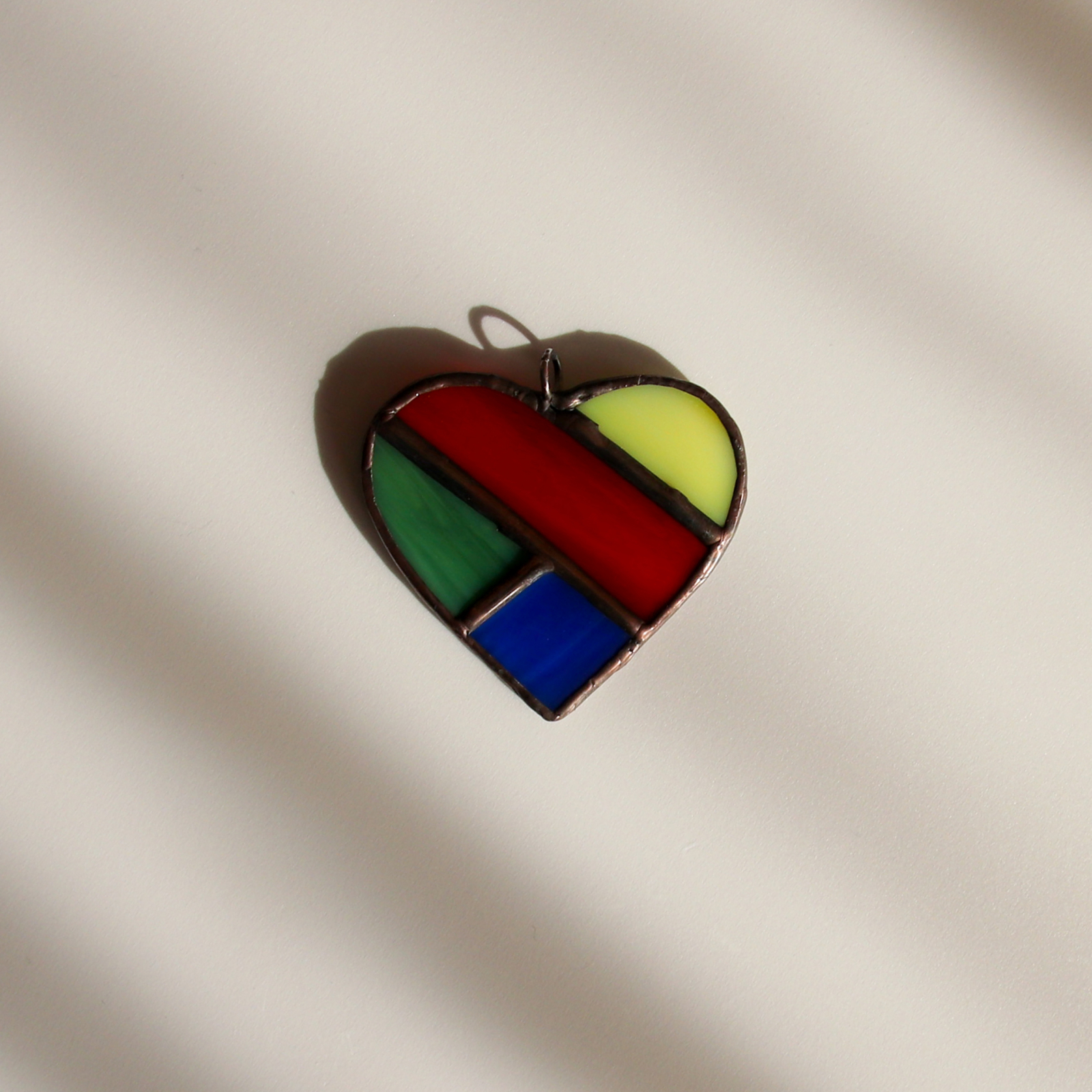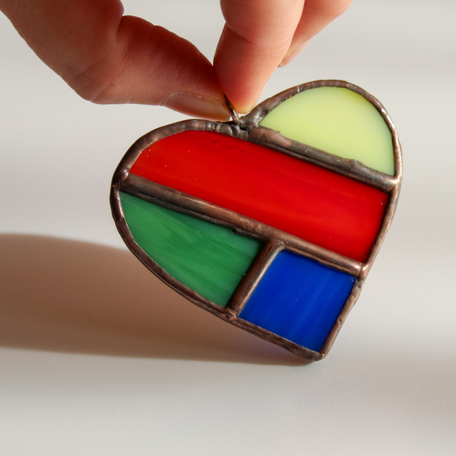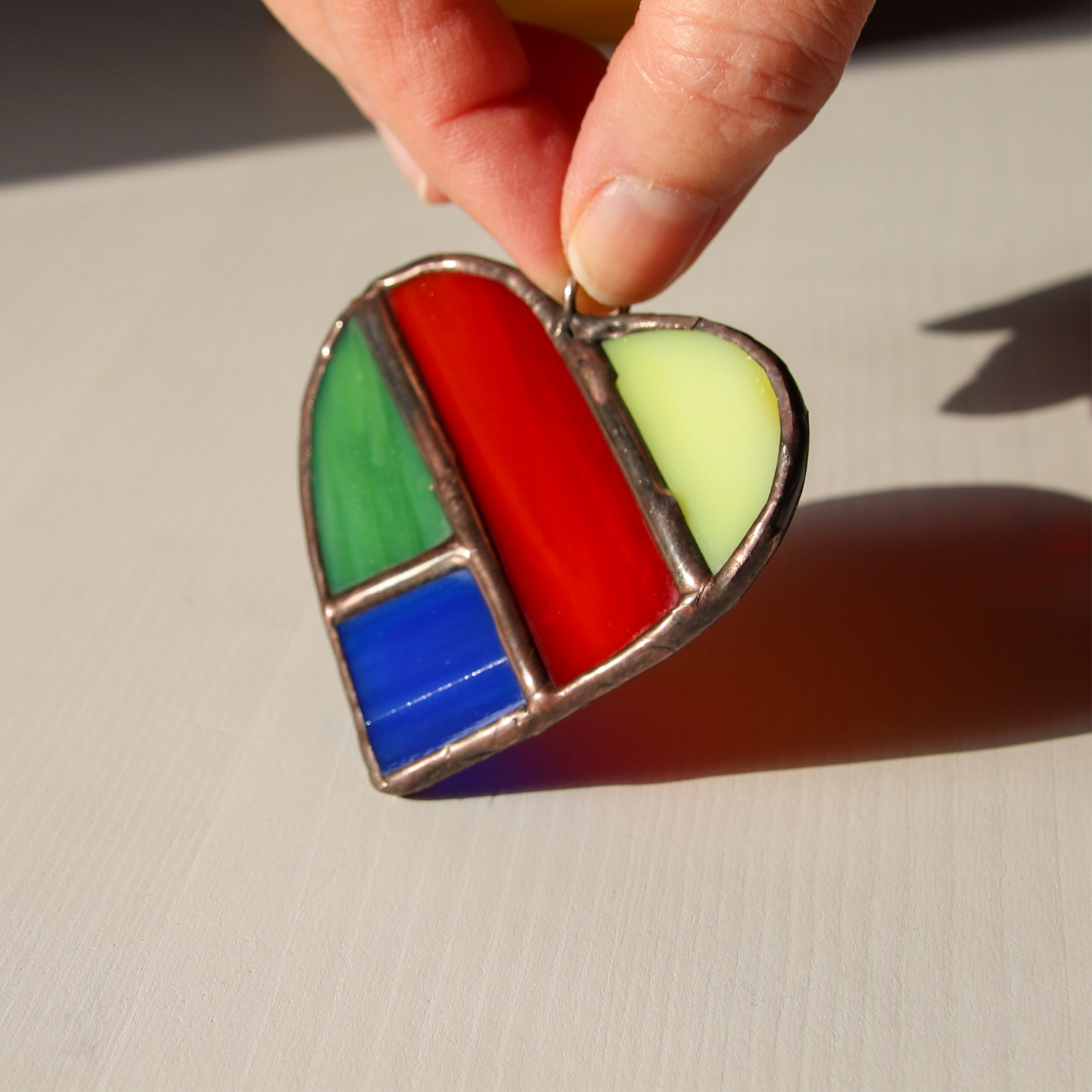 Materiale folosite: sticla vitraliu, cupru, cositor, snur textil cerat.